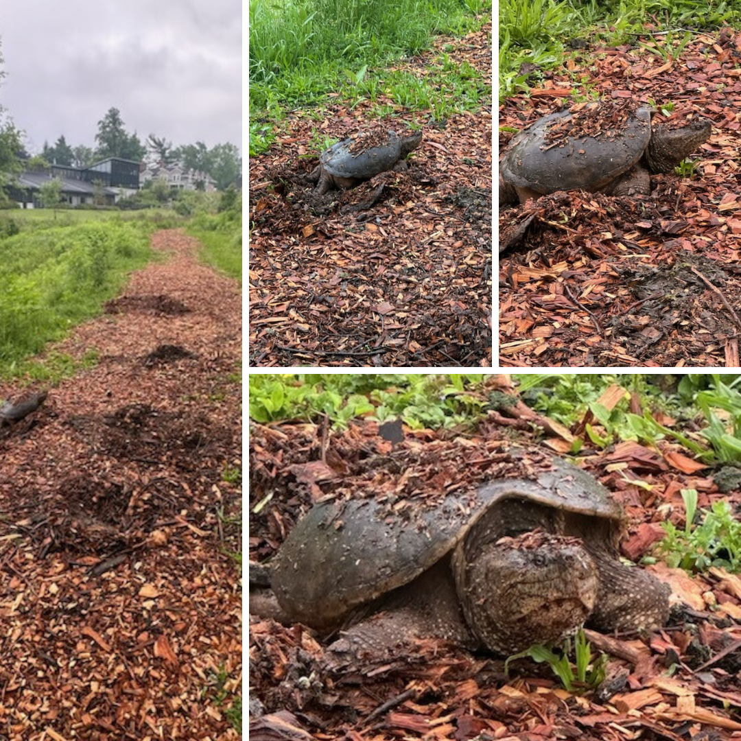 When I meet a potential student or family who is interested in Park and we talk about our science program, I love to tell them about the day the snapping turtle walked up the pathway near the stream to find a spot to lay its eggs. It was during the last week of school and it was raining. Mrs. DeGroat sent a text message to the faculty that said, “The snapping turtle is outside of KH ready to nest. Bring your students if you can, this is incredible.” When I arrived, I could see Mrs. DeGroat pounding stakes into the ground, marking the spot where the nest was while one of her students was holding an red umbrella over her head while she worked. Other students and their teachers had arrived too, from Lower, Middle, and Upper School, along with faculty and staff who wanted to catch a glimpse.
