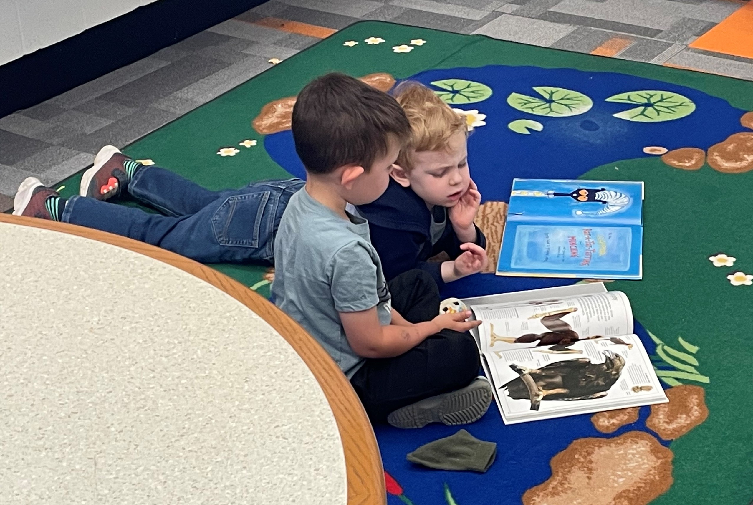 When our youngest students visit the library, the school librarian demystifies books by encouraging the use and exploration of books on our shelves and by sharing stories during library specials. Students are encouraged to explore books that interest them, ask questions of the books, and share their findings with their peers and other students, their librarian and teachers.