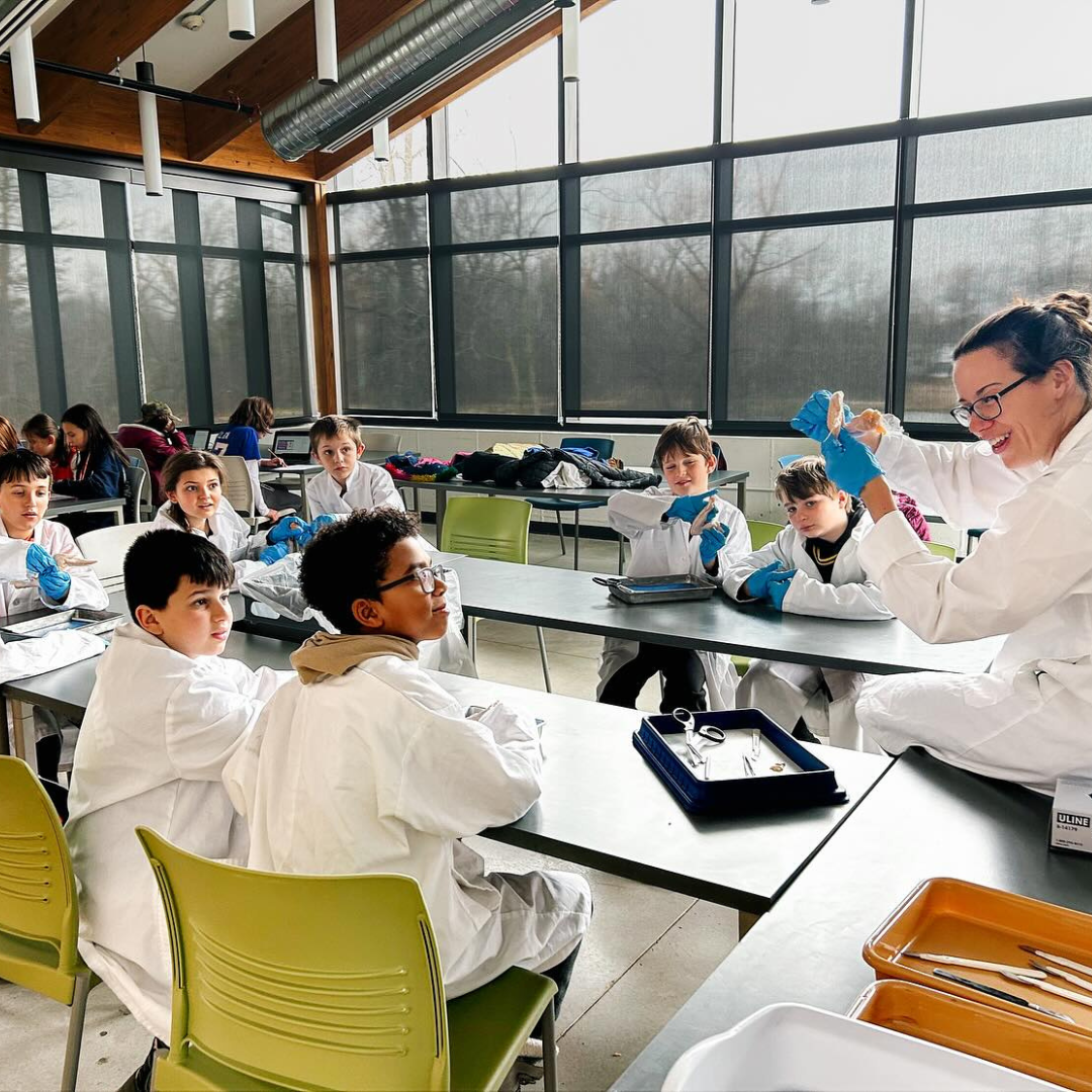 Our education takes place in and out of the classroom, utilizing every last foot of our 34-acre campus and its playing fields, playgrounds, pond, and ecology centers as learning tools.