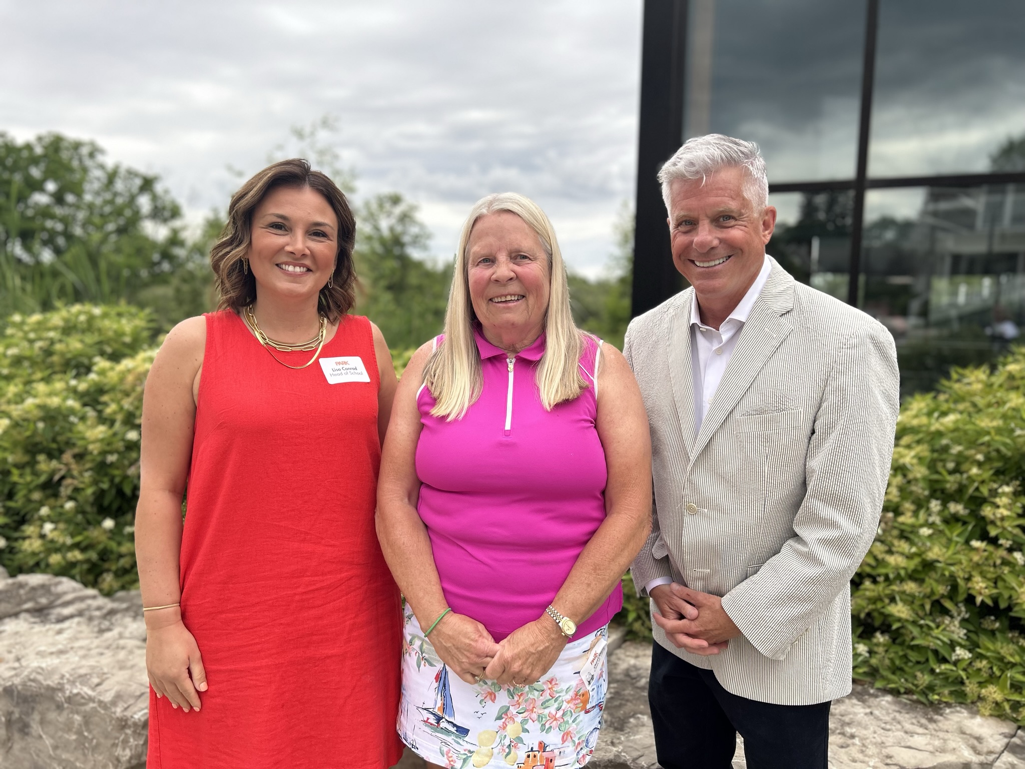 Pictured Above : Lisa Conrad, Head of School; Cheryl Meyer ’72, Sports Hall of Fame Inductee 2024; Dr. Keith Frome, President
