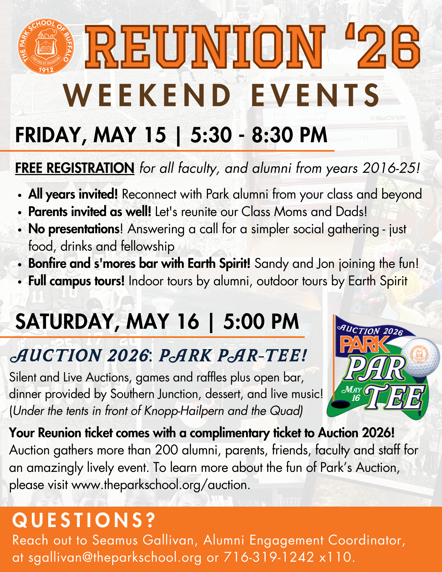 All invited to join us for Park’s party of the year on Saturday, May 16! There will be food and drinks, live music and fellowship, incredible live and silent auction items up for bid, and hundreds of Park supporters enjoying the fun.