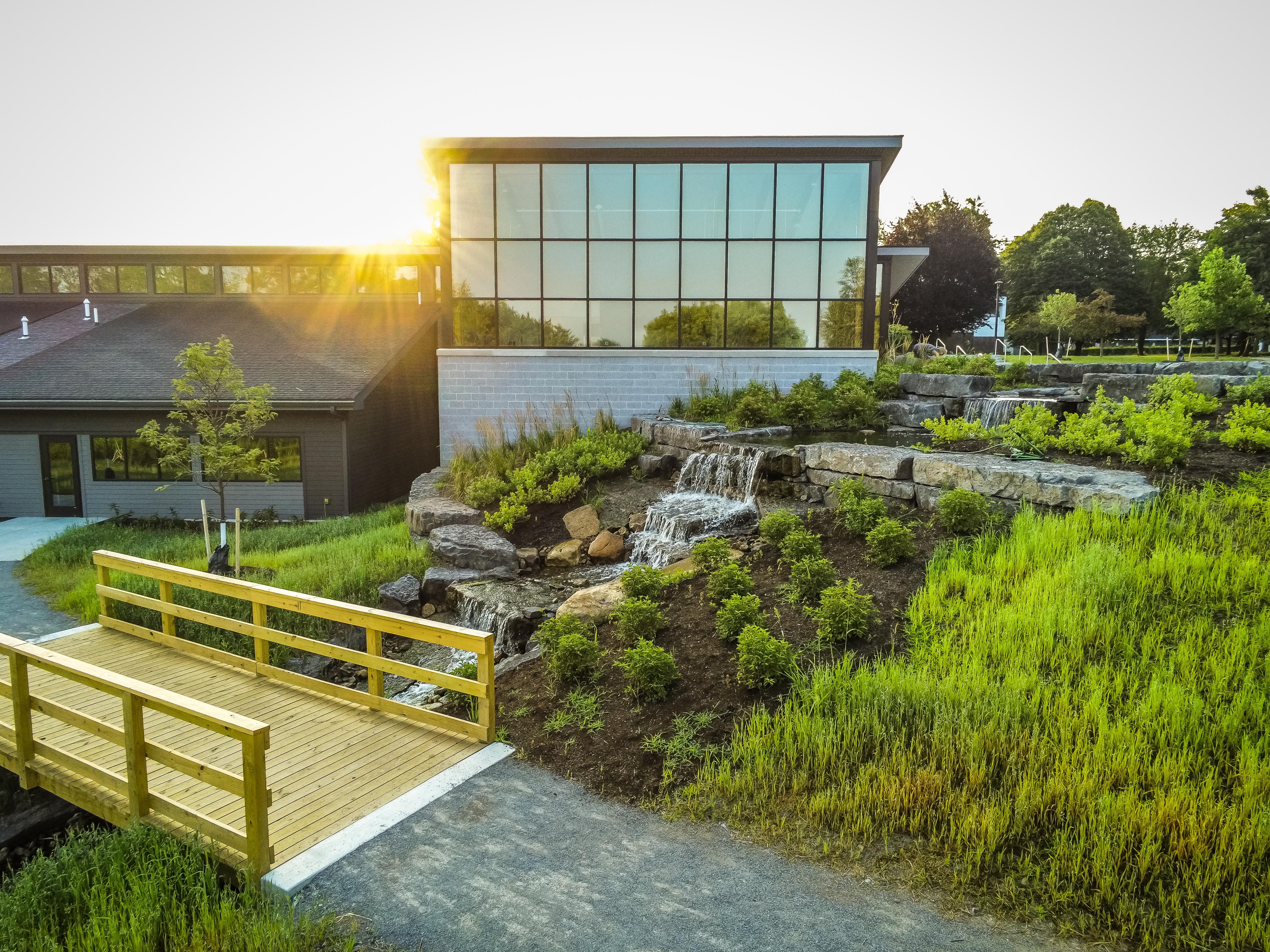 - Historic 34-acre campus with pond, marsh, nature trails, greenhouse, and waterfall.