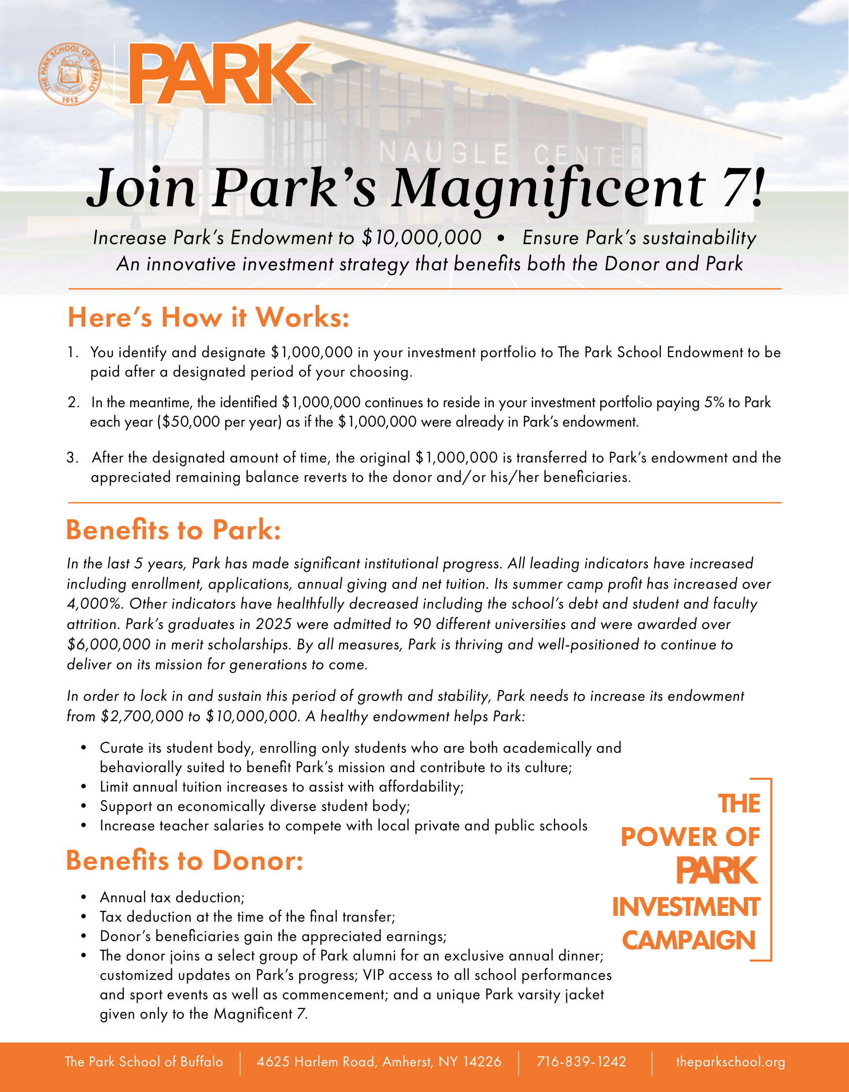 We are eager to share the importance of this campaign with the Park community and would welcome a conversation with you to discuss how you can invest in the Power of Park. Please contact Dr. Keith Frome, Executive Director of The Park School of Buffalo Foundation, at kfrome@theparkschool.org or 716.839.1242 to schedule a meeting.